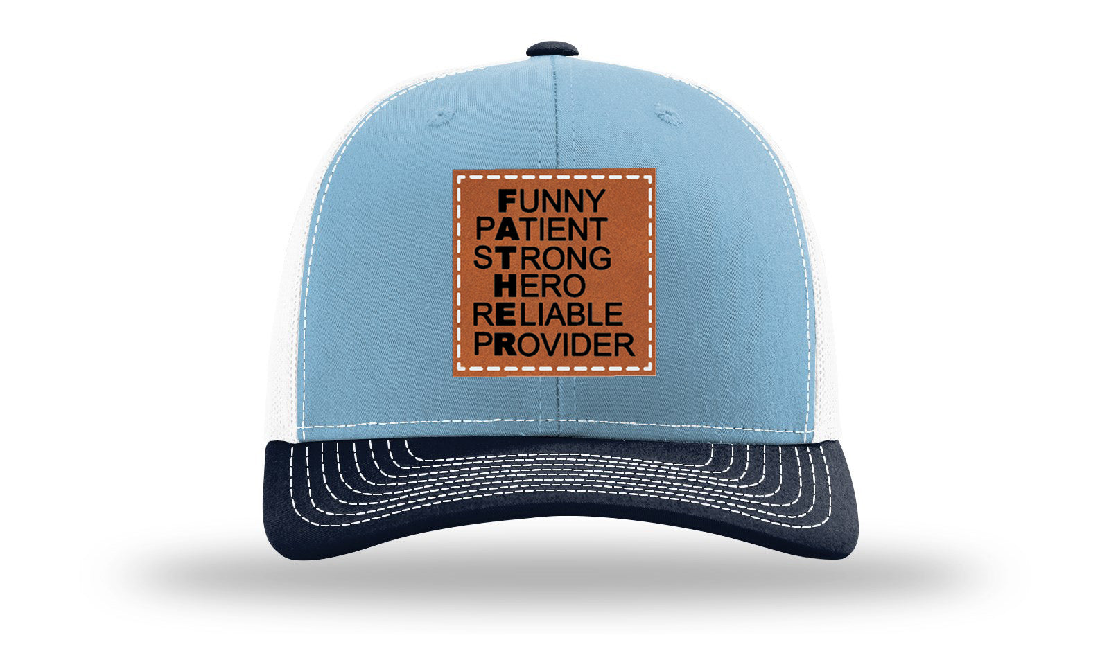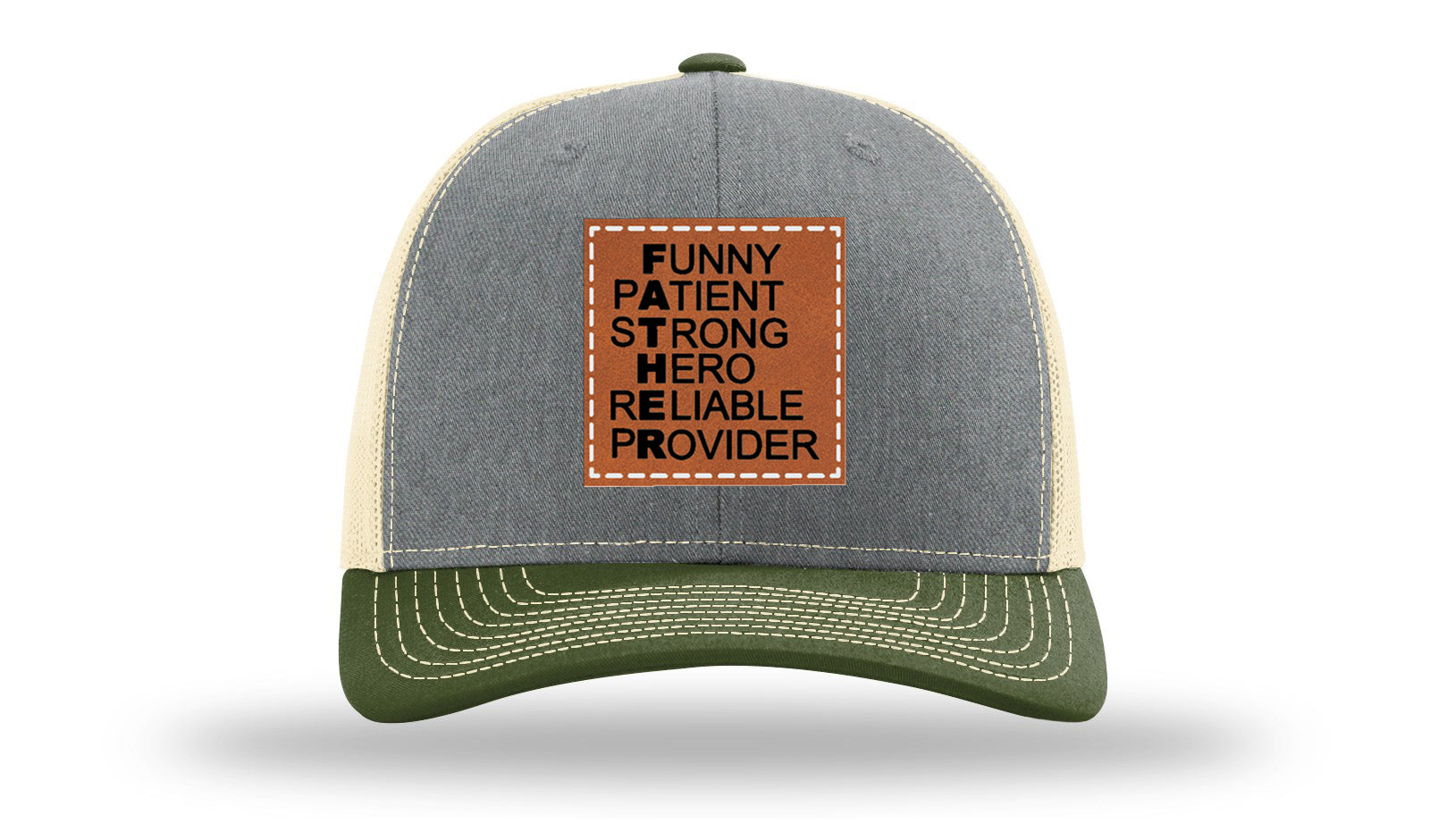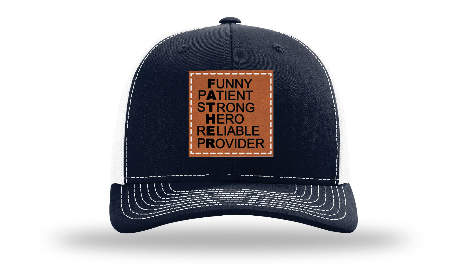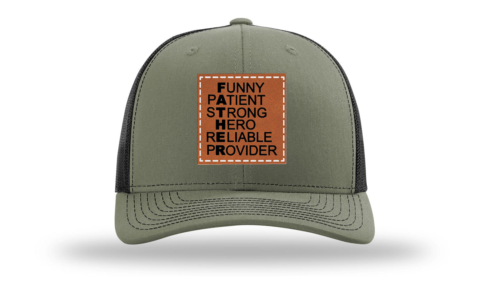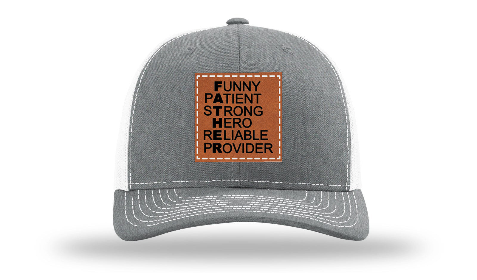 Upgrade your headwear with a Richardson 112 hat featuring a custom laser-engraved leatherette patch that’s hand-sewn for long-lasting durability. Unlike pressed-on patches, the stitched design guarantees strength, style, and a premium finish.